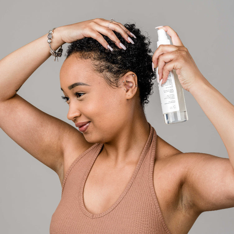 Moisture Refresh: Mist hair and scalp daily (or as needed) with the Hydrating Hair Mist, focusing on dry roots and strands.